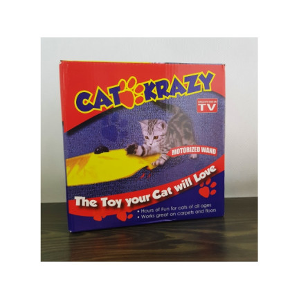 Silikonový ocas je umístěn pod šustícím prostěradlem, aby unikl kočce