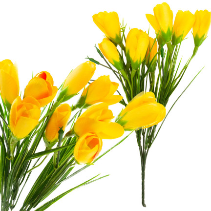 KROKUS KÜNSTLICHE KROKUSSE STRAUSS 10 KROKUSSE IM GRAS ZUSAMMENSETZUNG FRÜHLING GELB